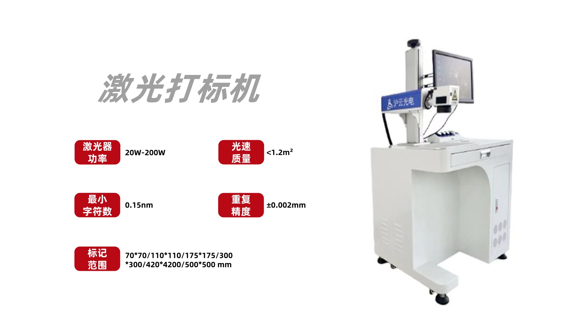 4) 加工效率高,打標速度快,對工作表面無腐蝕,無磨損、無毒、無污染。